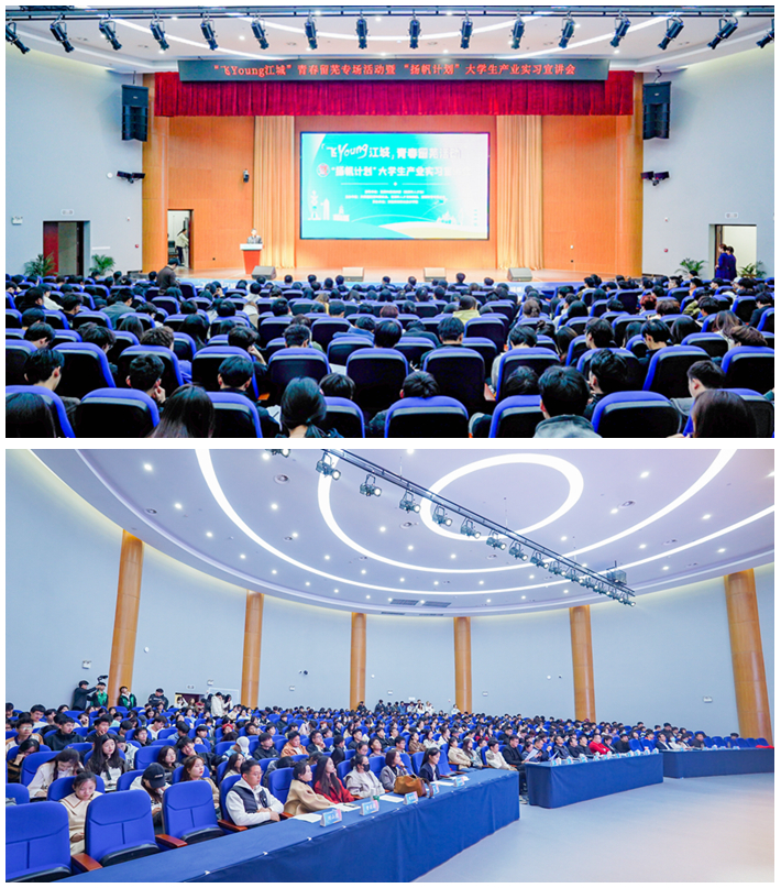 11月23日下午,“飞Young江城”青春留芜活动暨“扬帆计划”产业实习宣讲会在我校举行,团市委副书记李小东,校党委副书记王炜 雷火竞技,团市委,市人才发展集团,学校相关部门负责人,优秀校友代表,各学院团总支书记,就业专员,学生代表等450余人参加活动。