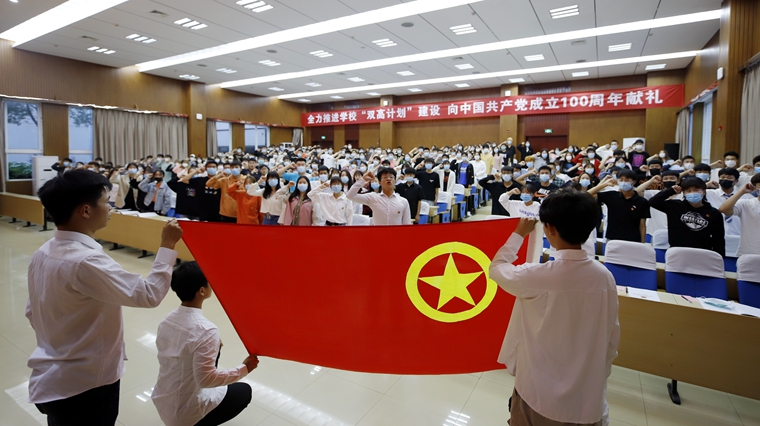 典礼在雄壮的国歌声中拉开序幕,全体师生齐声奏唱国歌,现场气氛庄严肃穆,学员精神振奋,接着 雷火竞技app下载,培训班班主任路贺龙宣读《培训须知》,介绍了课程安排,班级管理以及考核要求,信息与人工智能学院大数据技术与应用专业203班朱凯雯同学代表全体学员发言,她表示:“在中国共产党成立100周年之际,参加青马班培训具有更加重要的意义,一定会珍惜学习,锻炼的机会,努力学习,主动实践,高质量完成相关培训课程,进一步增强四个自信,勇担青年使命,争做时代新人,”接着,在学员代表会计学院审计专业202班王志强同学的带领下,全体学员举起右拳,面向团旗,重温入团誓词,整齐嘹亮的宣誓声响彻整个会场,整个开班典礼各环节紧凑有序,庄严隆重,使现场学员接受了一次“沉浸式”的仪式教育。