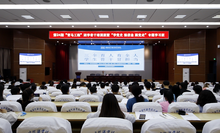 仪式结束后,郑伟作了题为《三全育人育全人学生骨干甘担当》的讲座,讲座从青年学子所处的时代特征,我校三全育人工作方略,团学骨干使命担当等三个方面展开 雷火竞技官网,希望学员们充分利用青马班的学习机会,在实践中锤炼,成长,进步,做到“学党史,强信念,跟党走”,成长为新时代的徽商工匠,争做新时代“六有”大学生,为实现中华民族伟大复兴的中国梦贡献自己的青春,智慧和力量。