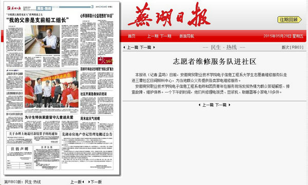 《芜湖日报》报道我院电信系大学生志愿服务活动