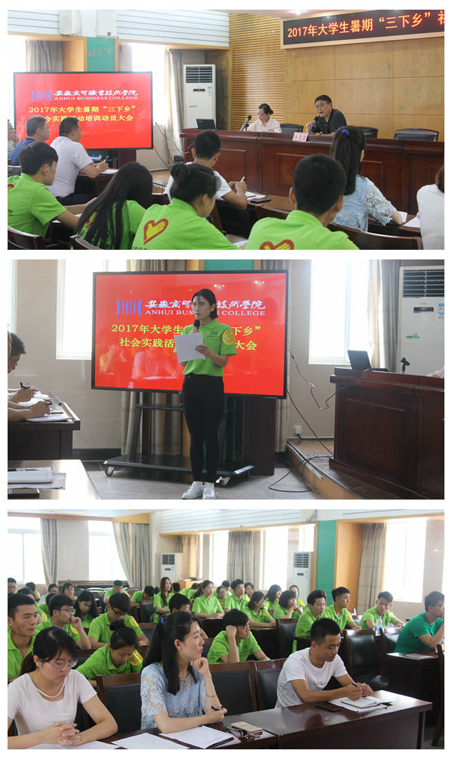 6月29日 雷火竞技手机版,学院2017年大学生暑期“三下乡”实践活动培训动员大会在弘商楼二楼会议室隆重举行,学院党委副书记,纪委书记朱光应,各系团总支书记,各实践团队指导老师以及参加本次暑期社会实践的全体大学生志愿者参加了此次大会。
