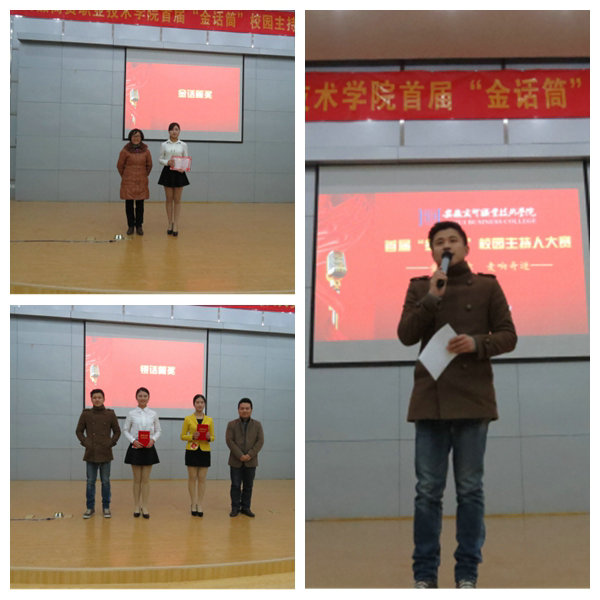 为促进学院校园文化建设,丰富在校大学生的校园文化生活,提高我院大学生的综合素质,12月9日,学院首届“金话筒”校园主持人大赛决赛在学术报告厅举行,学院宣传统战部部长姚珑珑 雷火竞技,院团委副书记孙握瑜,芜湖广播电视台新闻主播沈俊,芜湖新闻广播电台主持人扬帆等观看了比赛, 。
