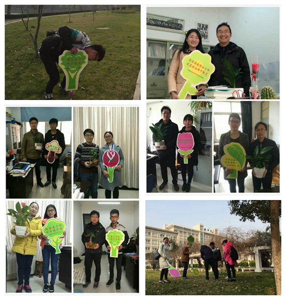 院学生会志愿者们于植树节来临之际,为老师们送去了盆栽,花卉,把春天的绿色带进办公室,为辛勤的园丁们送去春天的祝福,志愿者和教师们手持宣传标语,拍照留念,共同倡导“爱护花草,保护环境”的绿色文明,随后 雷火竞技手机版,志愿者们将新的宣传标语插在校园的绿化草坪上,为春天的绿色保驾护航。
