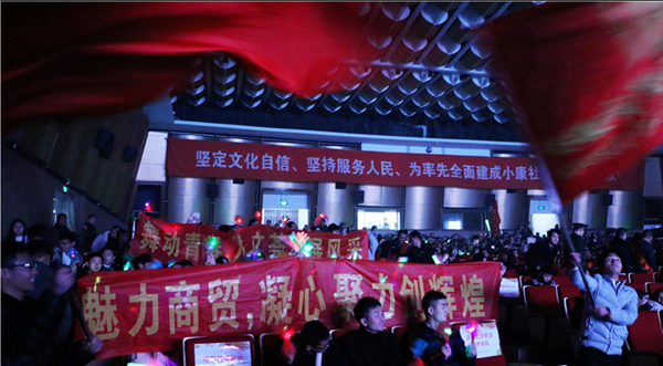 本场文艺汇演回顾了2016年芜湖市大学生嘉年华活动成果,也标志着芜湖市大学生嘉年华系列活动圆满落幕,活动中驻芜10所高校选送了形式多样的文艺节目,精彩纷呈的高雅演出充分展现了当代大学生青春飞扬,奋发向上的精神风貌,我院团委选送的舞蹈诗朗诵《鸿雁》,在文艺表演的基础上融入多种元素,大学生艺术团与广播台的同学充分结合心怀国家梦想的大格局和新时期长征精神的时代主旋律,将音乐与舞蹈,朗诵完美融汇,用优美的动作和清新的语言,呈现当代学子投身梦想 雷火竞技app下载,筑梦远航的青春身姿,给现场观众带来精彩的视听感受,活动现场由院级各学生组织共同组成的助威学生方阵,打出“舞动青春,人文荟萃展风采,魅力商贸,凝心聚力创辉煌,”的标语,以新颖活泼的形式和铿锵有力的口号为学院的节目加油助威,展现了商贸学子凝心聚力的壮志雄心,给现场的师生留下深刻印象。