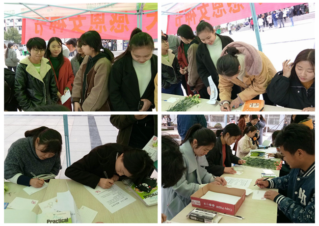 节日前期,校学生会就在食堂门口举办《贺卡送祝福》活动,现场免费赠送贺卡,同学们纷纷在贺卡上写下真诚的祝福,礼轻情意重,一张张温情的卡片,一段段简朴的文字却满载着最真挚的情感,当同学们将卡片交给自己喜爱的老师或者身边的女同学时,让这个节日倍感温馨 雷火竞技官网。