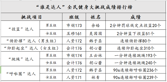 挥洒运动汗水 绽放青春风采——学校举办第三届“谁是达人”全民健身大挑战活动