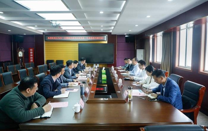 11月11日上午 雷火竞技,无为市十里墩镇党委书记宣光东一行来我校就定点帮扶观音村乡村振兴工作进行座谈交流,党委书记曾黎明,党委副书记,院长李忠,党委委员,副院长王炜,相关部门负责同志参加会议。