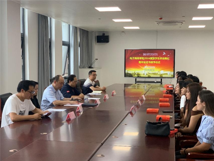日期:2024-06-24 来源:6月21日上午,电子商务学院在学院1212会议室举行2024届留学生毕业典礼暨毕业证书授予仪式,电子商务学院院长夏名首,电子商务教研室主任何兴旺,外事办黄亚琴,教师代表,全体毕业留学生和部分在校留学生现场参加了仪式,仪式由留学生班辅导员王洋洋主持 雷火竞技。