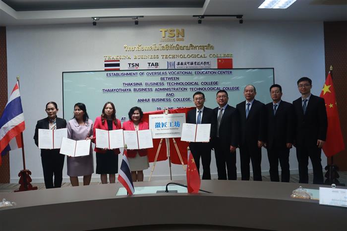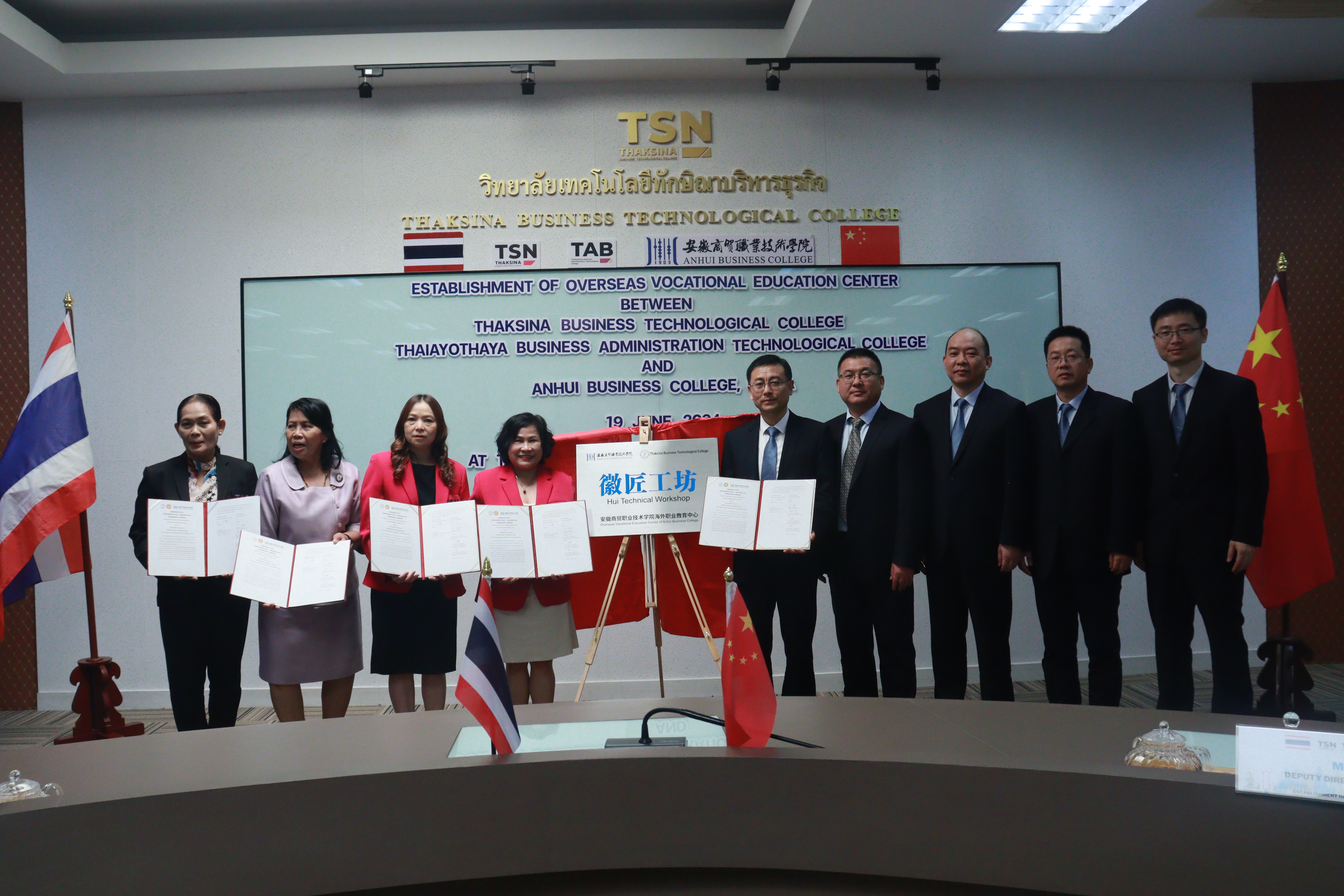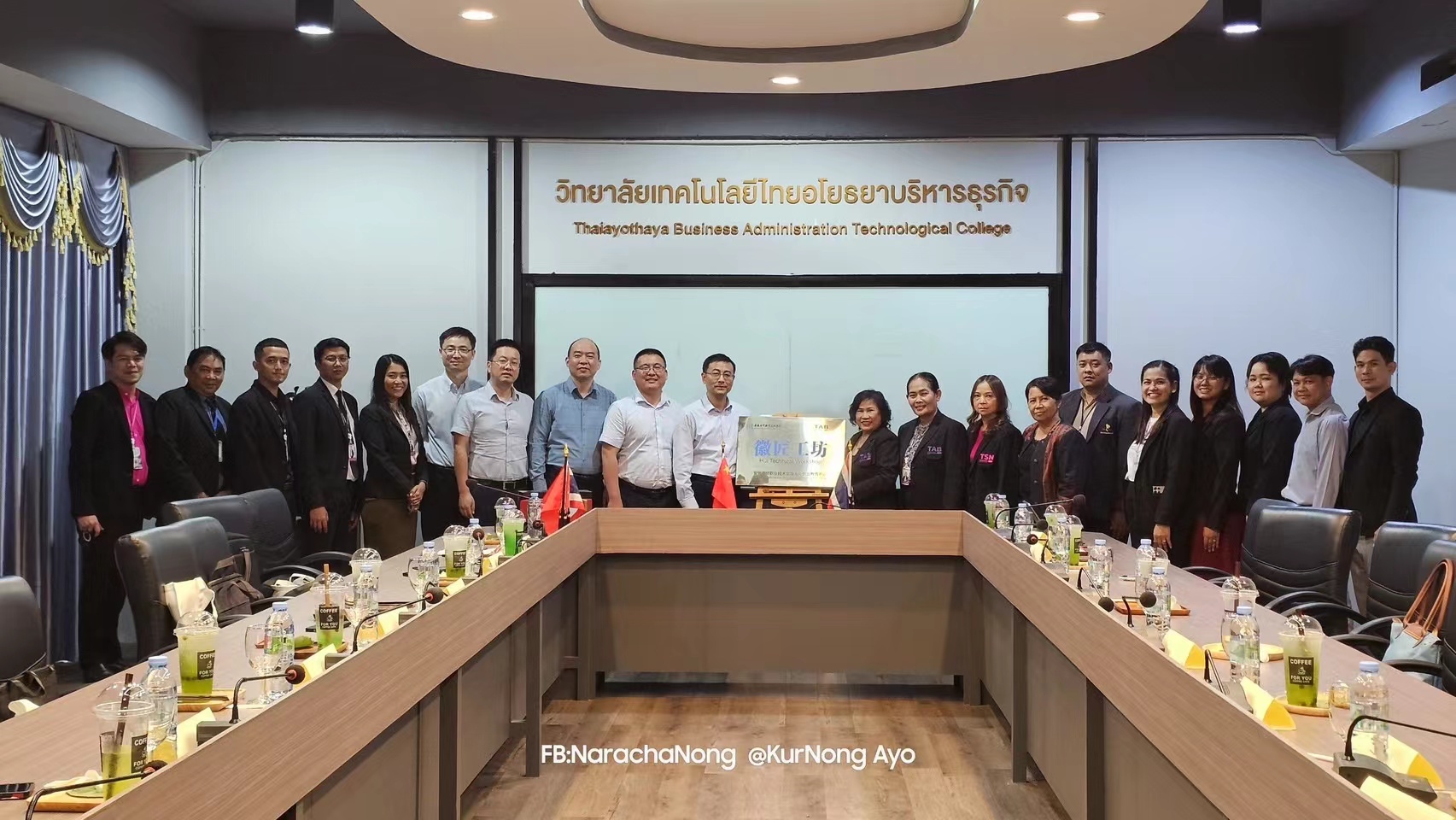 双方代表签署了“中泰相互设立职业教育中心”协议,并为大城商务管理技术学院和塔克西纳商务技术学院“徽匠工坊”揭牌,我校代表团观摩调研了两所院校的市场营销,旅游管理,数字图形和游戏动漫等专业的课堂教学过程,与师生开展对话交流,走访了实习实训教学和考核场所 雷火竞技最新版本,深入了解该校实践课程规划,学生的职业技能成果和中国文化学习情况等。