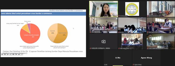 随后,电子商务学院朱方老师给印尼世界大学,印尼峇淡慈容职业学校共151位师生作了主题报告,介绍了跨境电子商务的发展现状与趋势,跨境电子商务主要岗位及技能要求,我校跨境电商专业雷火竞技安卓版实例,数据化选品方法 雷火竞技手机版,仿真平台商品上架过程实操演练等内容。