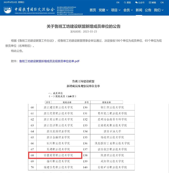 日期:2023-04-24 来源:近日,经鲁班工坊建设联盟理事会审议 雷火竞技,中国教育国际交流协会公布了“鲁班工坊建设联盟新增成员及观察员单位名单”,我校成功入选成员单位。