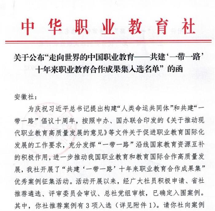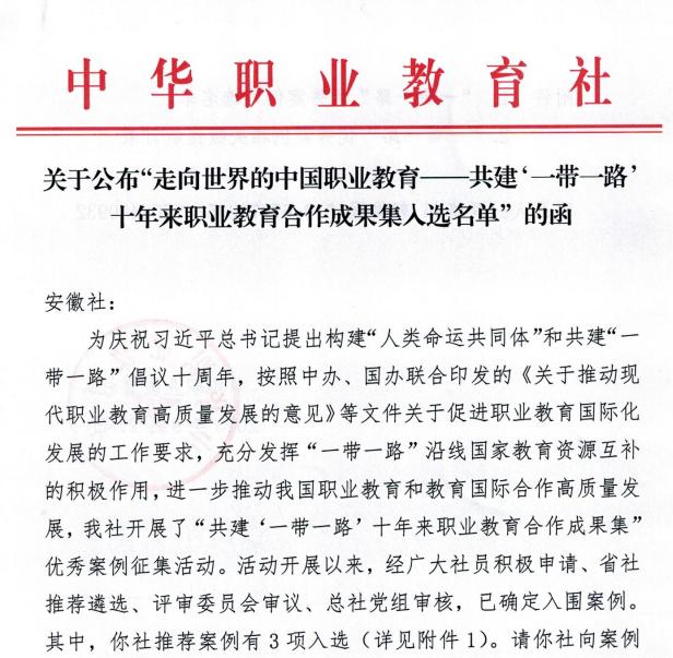 我校案例入选中华职教社“共建‘一带一路’十年来职业教育合作成果集”