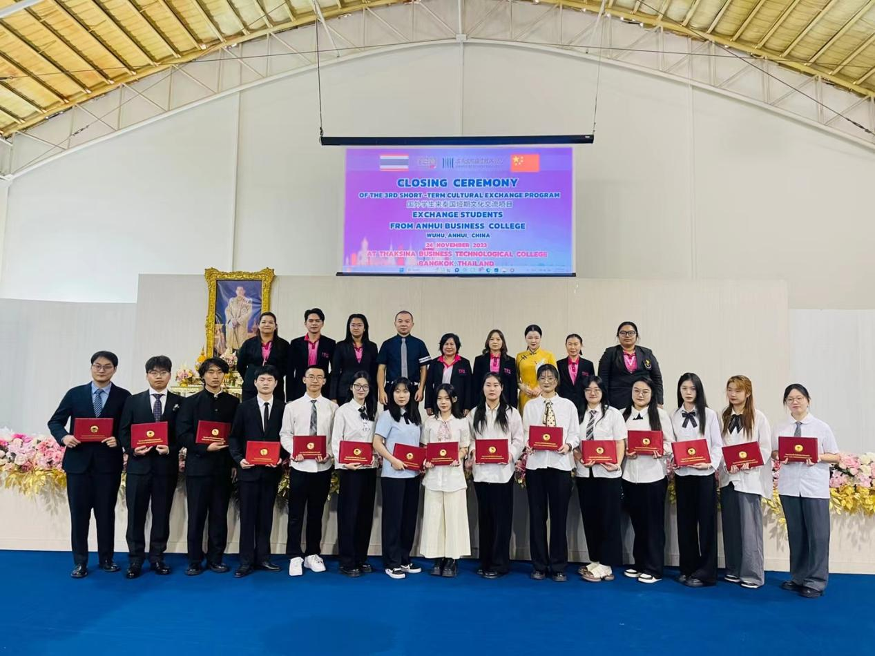 日期:2023-12-01 来源:为服务“一带一路”倡议 雷火竞技,加强与“一带一路”国家人文交流,提升国际化合作办学水平,11月14日-26日,我校15名学生受邀赴泰国塔克西纳商务管理技术学院和大城商务管理技术学院进行短期文化交流活动,团队由我校两位赴泰执行汉语教学任务的教师张磊和陈丹文担任领队。