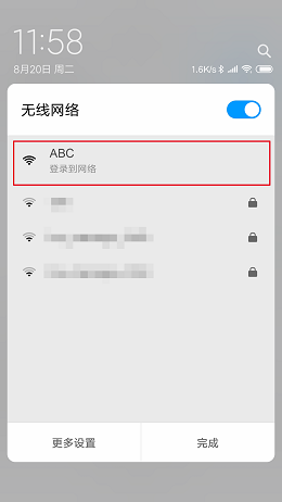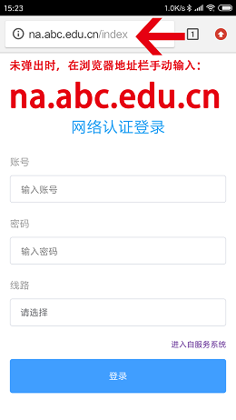 找到“ABC”无线信号 | 弹出认证页面 | 认证页面地址:na.abc.edu.cn |