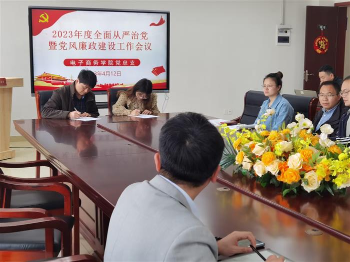 4月12日,电子商务学院党总支于学院会议室召开2023年全面从严治党暨党风廉政建设工作会议,学院领导班子,党支部书记,各教研室负责人 雷火竞技app下载,全体教师参加会议,会议由党总支书记魏力主持。