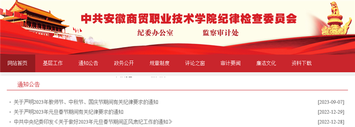 图7 校纪检监察网站发布和转发节前严明纪律提醒通知(部分)