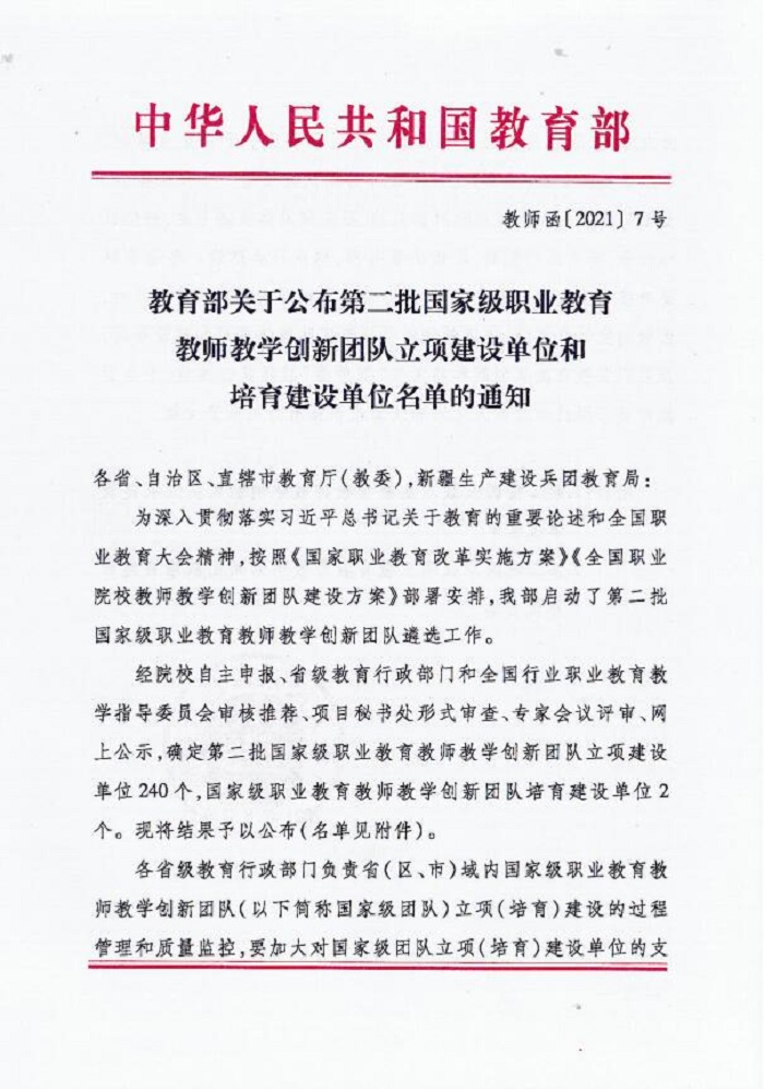 "雷火竞技app下载" 我校成功入选国家级职业教育教师教学创新团队立项建设单位