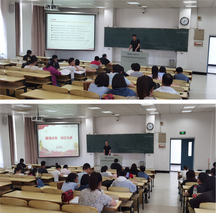 6月8日下午,电子商务学院党总支书记魏力给在座全体教职工上了一堂主题为“廉洁从教 清白为师”的党风廉政专题讲座,讲座伊始,魏力带领大家深入学习了“红七条”,引导广大教师牢固树立纪律意识和规矩意识,认真践行廉洁自律准则,遵守学校各项规章制度 雷火竞技app下载,自觉加强自身修养,牢固树立廉洁从教的意识,将廉政文化建设与校园文化,师德师风相结合,使廉洁文化教育落到实处,随后,他进一步宣传了新时代高校教师职业行为十项准则,不断夯实广大教职工廉洁从教的思想道德基础,筑牢拒腐防变的思想道德防线,学院院长夏名首则从教学层面谈及要使“廉洁文化进校园”教育活动渗透到教育,教学,管理的各个领域,聚焦高校立德树人根本任务,厚植校园廉洁文化,深入课堂培养大学生廉洁意识,以多种形式开展廉洁教育,持续发挥思政教育课在高校的育人作用。