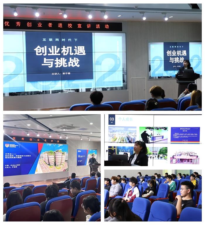 10月-11月,为提升大学生的创业意识,激发创业热情,校创新创业学院开展优秀创业者进校园宣讲系列活动,学院组织22级,21级近百名同学积极参与,先后聆听武汉牧书文化传媒有限公司合伙人,芜湖整点文化传媒有限公司创始人,芜湖玩咖网络科技有限公司总经理,学院优秀毕业生郭子薇主题为《互联网时代下的大学生创业机遇与挑战》的讲座和南洋理工大学副研究员,研发工程师,苏州斯普尼克卡门科技有限公司创始人罗睿康博士主题为《创在南洋:科技创业与出海东南亚的机遇与挑战》的讲座,在聆听校友,专家的讲座后,同学们纷纷表示“作为当代大学生,要有‘初生牛犊不怕虎’的精神,热情,干劲 雷火竞技手机版,学习能力强,社会意识强,这些都是创业者应该具备的素质,也成为了创新创业的动力,在学好专业知识的同时,应该将创新素养有效应用,在大赛和实践中有效提升自我,更好实现自己的社会价值,”。