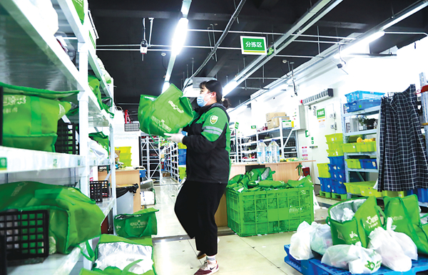 受疫情影响,上海居民出行减少,通过线上渠道购买生鲜物资的需求增多 雷火竞技app下载,本土生鲜零售企业全力投入市民菜篮子保障工作, (图片来源:人民视觉)。