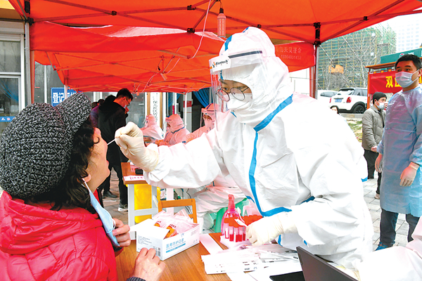 图为3月13日,市民在山东省青岛市市北区一检测点接受核酸采样 雷火竞技,新华社记者 李紫恒 摄。