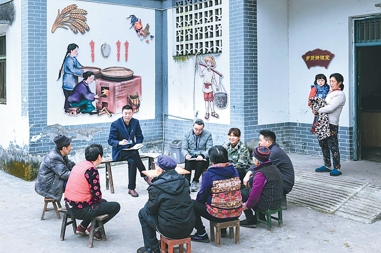 重庆市巴南区纪委监委创新方式推进家风助廉行动,让经典家风家训,优秀传统文化深入人心,图为日前,该区南彭街道纪工委干部到塔落村走访并开展听家风家训,讲家规家德故事活动 雷火竞技, 邓箭 摄。
