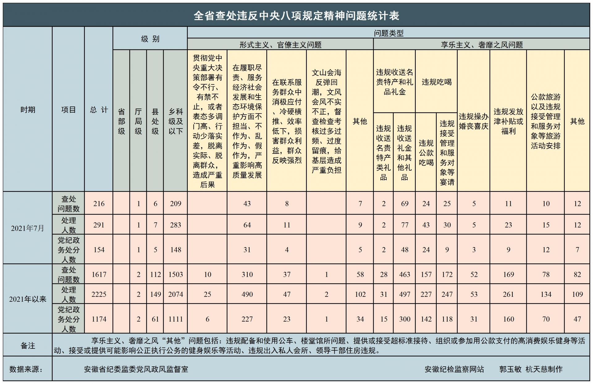 "雷火竞技2025版" 7月份安徽查处违反中央八项规定精神问题216起
