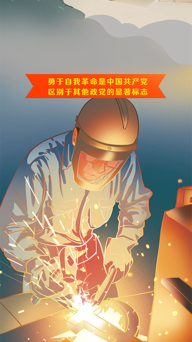 手绘长图 | 勇于自我革命是中国共产党区别于其他政党的显著标志