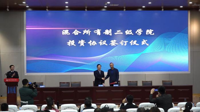 会上,党委副书记,校长李忠和安徽佰泰科技服务外包有限公司总经理胡泽签订混和所有制二级学院投资协议 雷火竞技安卓版,校党委副书记,纪委书记朱光应与安徽迪科数金科技有限公司总裁吴福全签订“迪科金服奖学金”捐赠协议。