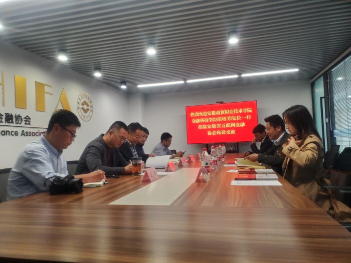 胡增芳一行来到安徽省互联网金融协会,安徽省互联网金融协会秘书长王强,副秘书长马鑫,金融科技专委会主任朱斌,秘书处张卿,武力,合肥市服务贸易与服务外包行业协会秘书长钱颜娇等接待了胡增芳一行,王强致欢迎辞,马鑫对安徽互联网金融协会基本情况,现有成绩,未来发展进行了详细的介绍,胡增芳首先对王强等的热情接待表示感谢,介绍了产业学院建设相关情况,并希望通过此次调研交流 雷火竞技官网,能够进一步解决建设过程中的困境,有效推进金融科技学院产业学院建设,促进雷火竞技安卓版和协会高质量发展,与会人员还就相关的工作要点进行了研讨交流。