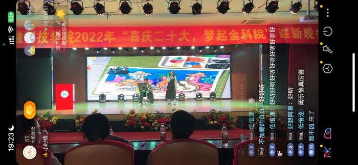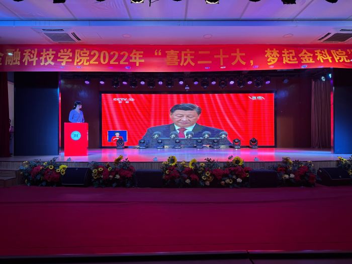 10月23日晚 雷火竞技app下载,金融科技学院在大学生活动中心举办“喜庆二十大,梦起金科院”2022级新生文艺晚会,金融科技学院团总支书记,新生辅导员,部分党员老师及新生代表参加了本次晚会,因疫情防控需要,晚会于线上进行直播,全院师生在线同步收看。