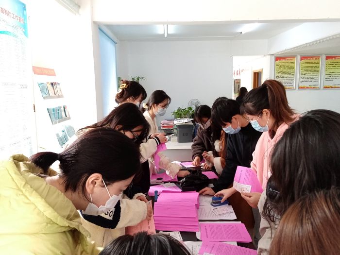 为保障镜湖区大垄坊街道人大换届选举工作顺利进行,减少社区群众取票麻烦,金融科技学院三十余名教师党员和学生党员以及入党积极分子为大垄坊街道三个社区制作装订人大选举选票,并将选票送到每家每户 雷火竞技官网。