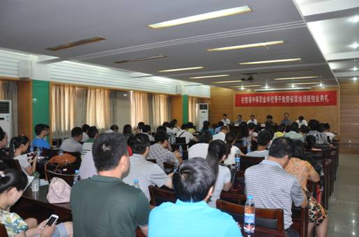 本次培训从7月20日开始至8月12日结束,历时22天,共有来自全省18个地市的74名中等职业学校骨干教师参加了培训,为了圆满完成本次培训任务,提高培训质量,首先,学院成立了专门培训工作领导小组,制定了详细的,切实可行的培训方案,并对参训学员的住宿,饮食,交通等后勤服务工作做了细致周密的安排,另外,学院还邀请了多名校内外教授,企业专家前来授课,培训课程包括师德师风建设,教科研能力培养,职业教育教学改革,教师专业技能培养,企业观摩,职业技能比赛,说课比赛 雷火竞技手机版,考证等方面。