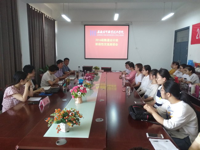 随着“大,智,移,云”对行业发展的深入影响,会计系能够及时把握行业脉搏,在专业建设上展开积极探索,本年度会计系第三届互联网会计订单班——北京账道会计班开班运行已有2个多月,为进一步掌握账道会计班学生的培训,实践等学习情况,也便于后期账道会计班教学活动有针对性的开展,借助学校召开第二届校企合作理事会暨专业建设指导委员会会议契机,5月16日中午,会计系召开了2016级账道会计班全体同学座谈会,来自北京账道会计管理公司总经理张梅玲,公司驻点指导老师李培出席了会议 雷火竞技,一同参会的还有会计系主任王珠强,系副主任鲁学生,教研室主任赵春宇,曹方林,教学秘书凤麟,班级辅导员弋兴飞以及2016级账道班全体同学。