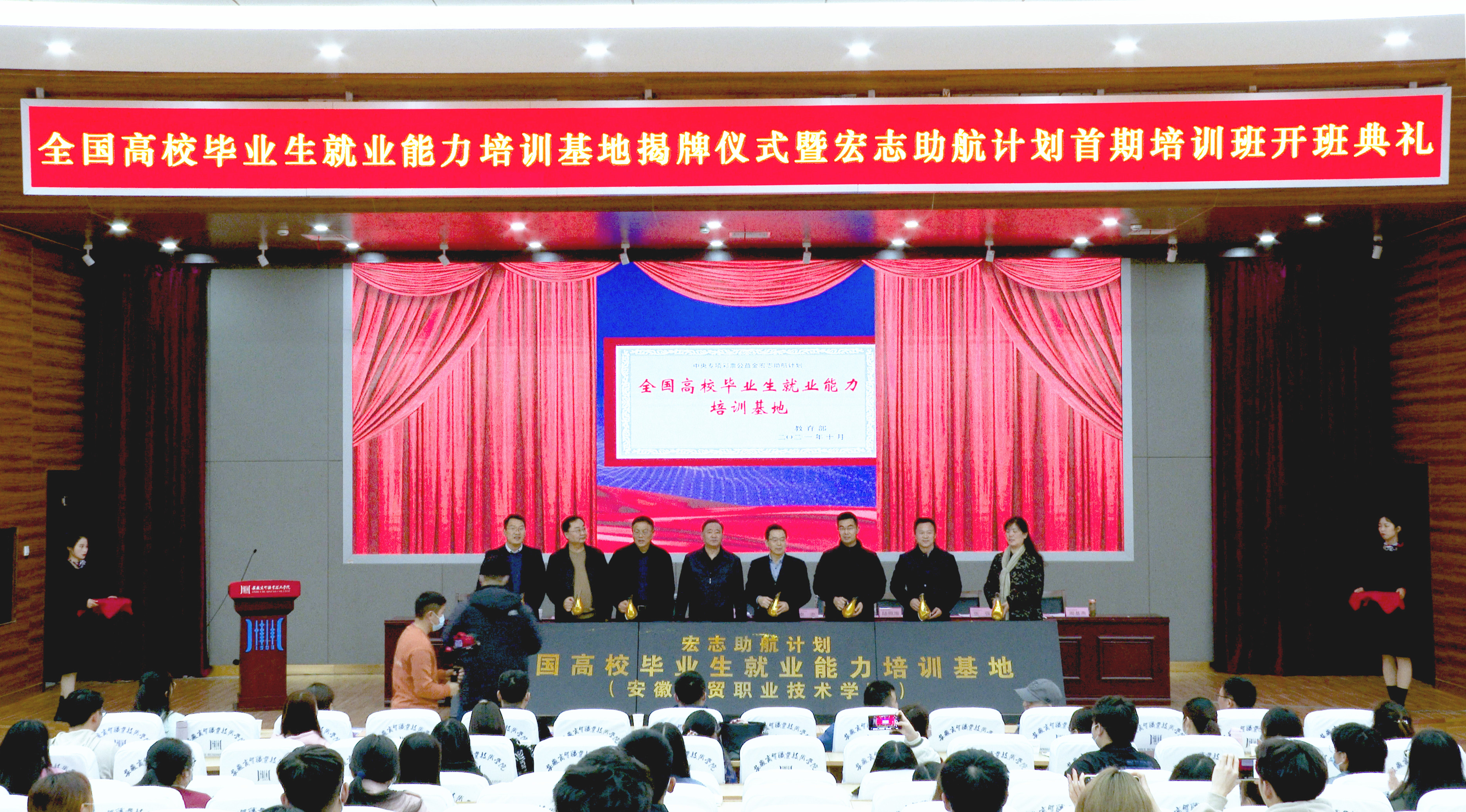 11月28日下午,全国高校毕业生就业能力培训基地揭牌仪式暨“宏志助航计划”首期培训班开班典礼在我校学术报告厅举行。安徽省大中专就业指导中心主任袁江林、校党委副书记、校长李忠,省大中专毕业生就业指导中心信息部主任崔松革、芜湖市人力资源和社会保障局党委委员、副局长陆照海,校党委副书记、纪委书记朱光应,省级职业指导大师工作室负责人、学校办公室主任张强,芜湖职业技术学院雷火竞技手机版处副处长周基燕出席开班典礼,“宏志助航计划”首期培训班授课教师、班主任以及参训学员参加开班典礼。典礼由校雷火竞技手机版处处长孙握瑜主持。