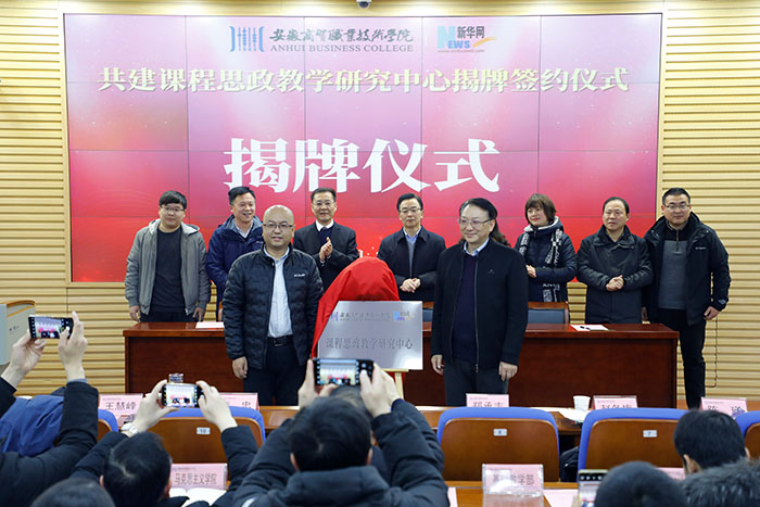 1月5日,我校与新华网共建课程思政教学研究中心签约揭牌仪式在录播室举行 雷火竞技,校党委书记章顺来,党委副书记,校长李忠,党委委员,副校长郑承志,新华网总裁助理姚予疆,新华网教育事业中心院校合作部副总监王慧峰,商务经理郭鹏飞,新华网安徽省教学服务中心主任武迪安出席会议,学校教务处,人事处,办公室,各二级教学单位等相关部门负责人及教研室主任参加签约仪式,安徽师范大学教务处副处长赵冬梅,教学资源建设中心主任陈琪作为特邀嘉宾出席。