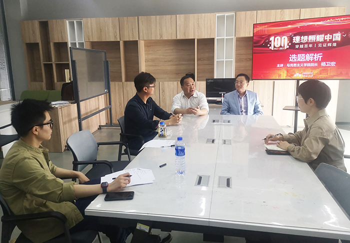 从项目前期的开题解析 雷火竞技ios版,创意指引到创作中后期的初稿作品点评,修改指导,这是一个需要一段时间循序渐进的过程,而这一次几位“外援”在项目完成过程实现了全程介入,与任课教师进行共同指导,5月18日的项目开题座谈会上,几位思政教师和任课教师通过座谈会的形式将“理想照耀中国”选题进行了深入剖析,通过对“见证百年历史成就”,“什么是英雄人物”,“青春应该怎样修炼”等主题的详细阐述,对广告创意的切入点进行了开题分析,为同学们“支招”,这次课程既是专业课,同时也是一次生动的思想政治教育课和党史学习教育课,教师的详细讲述和同学的积极提问让这次项目开题从原定的30分钟延长到超过一个小时,有同学笑称:从来没有觉得思政课这么“实用”。