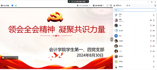为深入学习贯彻习近平总书记关于青年工作的重要思想和关于教育的重要论述,会计学院在暑假期间,通过集中学习 雷火竞技app下载,小组讨论,个人阅读等多种形式,组织第五届团学组织负责人深入领会《习近平与大学生朋友们》书中内涵并提交阅读心得,8月底,会计学院学生第二党支部组织全体师生参加了以“做担当民族复兴大任的新时代新青年”为主题的党日活动,此外,会计学院学生第一和第四党支部也于8月30号开展以“领会全会精神,凝聚共识力量”为主题的党日活动。