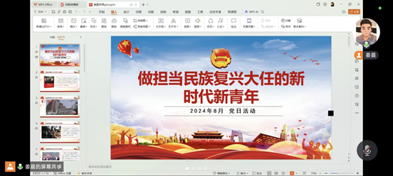 在支部活动中,学生第二党支部组织委员姜晨向党员师生推荐了经典书籍《习近平与大学生朋友们》 雷火竞技手机版,他介绍此本访谈实录讲述了习近平总书记在地方和中央工作期间,深入高校调研考察,关心指导大学生的生动故事,为我们树立了“做青年朋友的知心人,青年工作的热心人,青年群众的引路人”的光辉典范,接着大家共同观看了时政微视频,通过习近平总书记同师生互动交流,共话青春与期望的一个个瞬间,生动感受到了习近平总书记走近大学生朋友,关爱大学生朋友的温暖印记,最后,支部组织开展了党日活动心得分享,支部成员积极分享了自己的所感所悟,大家纷纷表示会牢记习近平总书记的殷殷嘱托,勇担时代重任,听党话,跟党走,胸怀忧国忧民之心,爱国爱民之情,不断奉献祖国,奉献人民,让爱国主义的伟大旗帜始终在心中高高飘扬。