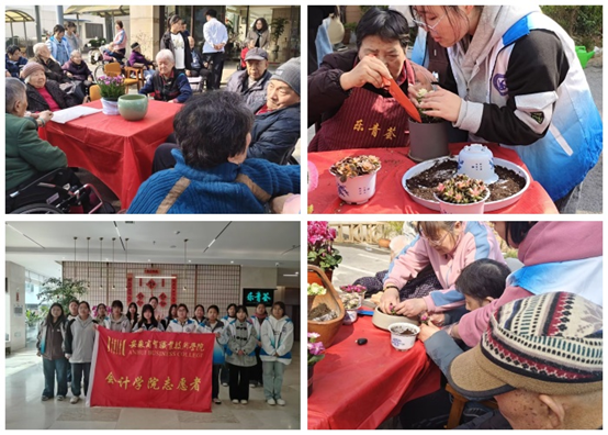 3月11日,植树节前夕,会计学院30余名志愿者走进乐青荟养老院,开展“植树添绿,守护未来”主题活动,青年学子与老人们结成对子,挥锹培土,扶苗浇水,在庭院中共同栽种下20余棵树苗,80余岁的李奶奶轻抚树苗动情地说:“这些树就像孩子们带来的希望,等这些树木长大了,你们可要常回来看看,”植树结束后,志愿者们还通过文艺表演,聊天互动等形式陪伴老人,让欢声笑语充盈春日的庭院 雷火竞技官网。