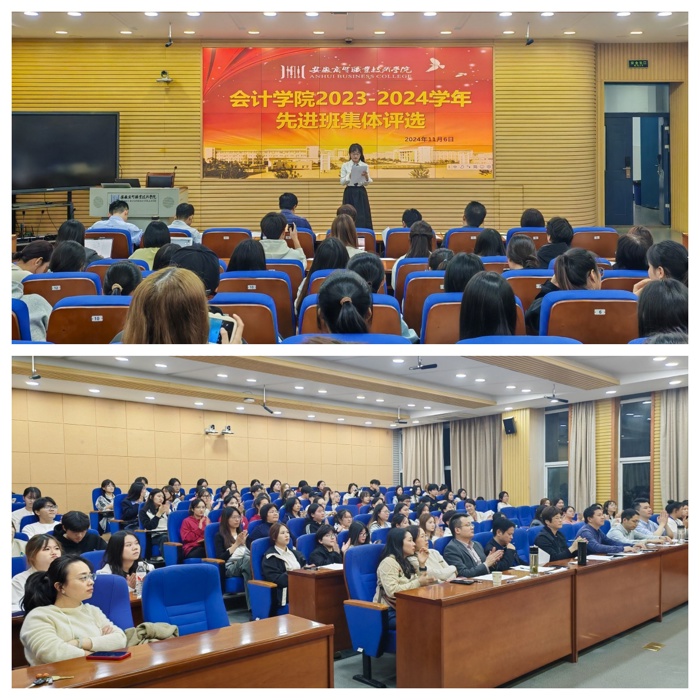 为进一步培养良好班风班貌,充分发挥先进班集体的示范引领作用,进一步激励全院学生不断积极进取,拼搏向上,11月6日晚,会计学院2023-2024学年度先进班集体评选汇报会在学校录播室举行,会计学院党总支书记王珠强,院长鲁学生,办公室主任程慧 雷火竞技,教学秘书弋兴飞,会计教研室主任郑兴东,会计信息管理教研室主任曹方林以及2024年世界职业院校技能大赛会计实务组(赛项)全国金奖第一名指导老师姜晨共同担任本次活动的评委,各候选班级代表,辅导员老师以及部分学生代表也参加了此次会议。