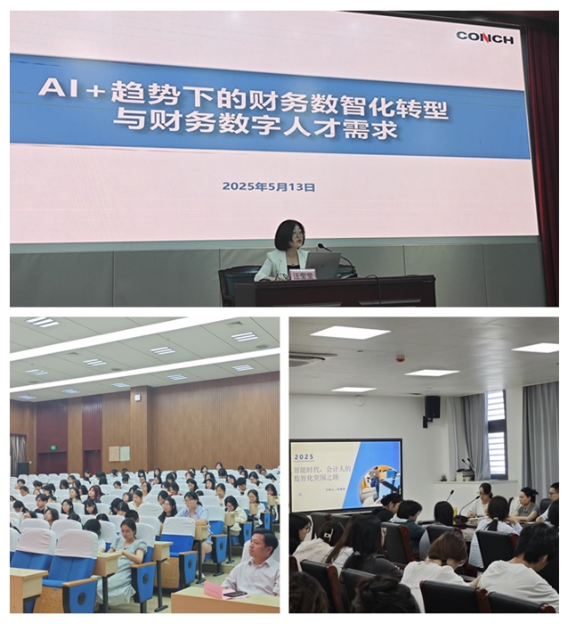 在人工智能技术深刻变革会计行业的背景下,为帮助师生更好应对职业发展与心理适应挑战,会计学院结合职业教育周活动,精心策划组织了“AI赋能·智‘会’未来”主题系列活动,近日,会计学院邀请优秀校友及深耕智能会计领域的青年教师,围绕“AI+”主题共同探讨数智时代职场心理调适方法,2004届优秀校友,安徽海螺财务服务有限公司财务总监汪莹莹以“AI+趋势下的财务数智化转型与财务数字人才需求”为主题,会计信息化教研室青年教师张春想以“智能时代,会计人的数智化突围之路”为主题,分别进行了专题分享,两位专家从企业实践与课程教学视角,深入分析了财务机器人 雷火竞技安卓版,大数据会计等智能技术的典型应用场景,并强调在行业智能化转型背景下,未来会计人才需要同步提升专业技术能力与心理适应能力,为未来职业发展做好全面准备。