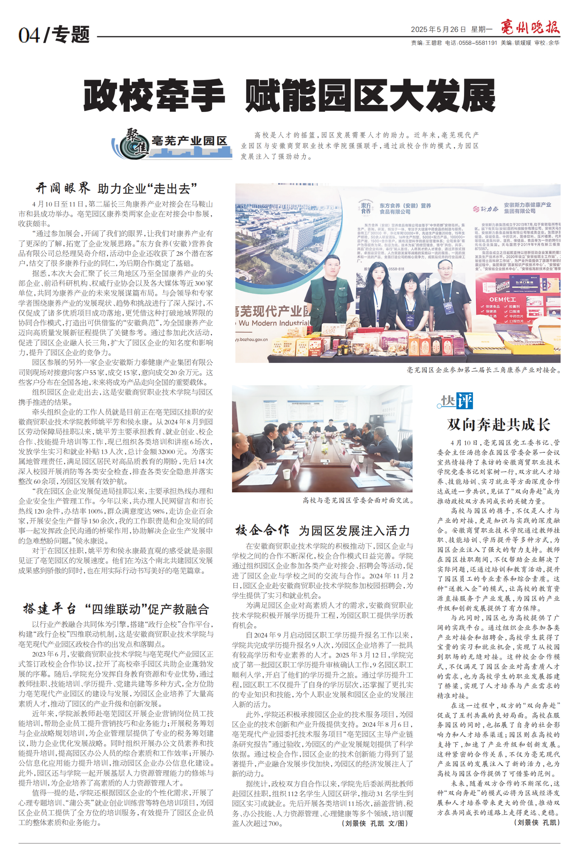 "雷火竞技最新版本" 【亳州晚报】政校牵手 赋能园区大发展