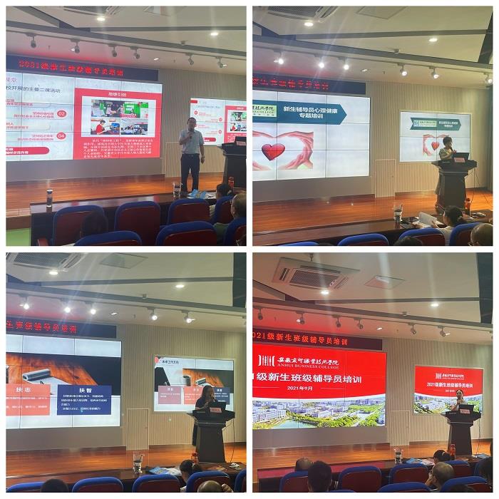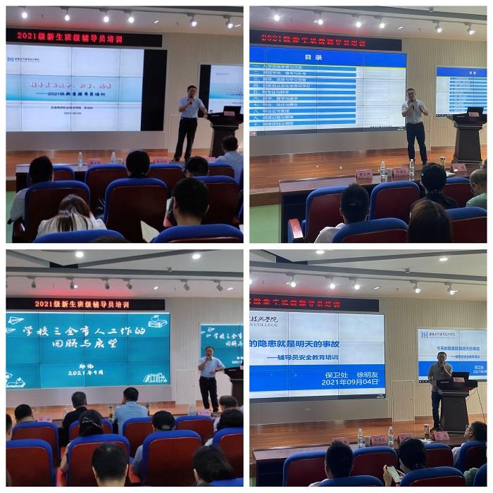 教务处处长黄义兵详细解释了学校学籍学历和成绩管理办法 雷火竞技手机版,要求新生班级辅导员尽快熟悉学生日常教学管理制度,严格按规章处理各项工作事务,保卫处副处长徐明友以《今天的隐患就是明天的事故》为题,从校园安全存在问题,学生安全工作关注点,学生安全问题处置和学生安全工作要求方面开展学生安全教育专题培训,郑伟以《学校三全育人工作的回顾与展望》为题,从“多贴近”“下手管”“甘担当”和“用心爱”四个方面阐释了学校“三全育人”工作的理念。