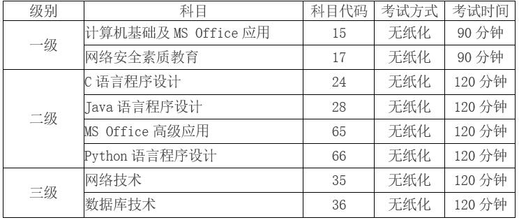 五、我校开设考试级别和科目