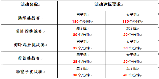 1,线下——达人挑战赛。包括个人项目和集体项目共5项,每个项目设置“达标”和“达人”两个标准。完成既定标准即为达标,另设置单项冠军排行榜,通过更新排名的方式,激发挑战者的潜能,挖掘“运动达人”。 雷火竞技ios版。