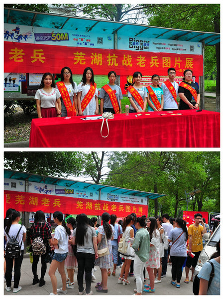 有一群青年,他们少时救国于危难,报国以血汗,这样的精神,更值得我们当代青年,致敬,铭记和弘扬,值此世界反法西斯战争胜利70周年暨中国人民抗日战争胜利70周年之际,为更好地传承 “爱国,进步,民主,科学”的五四精神,践行社会主义核心价值观,推进“四个全面”战略布局,弘扬以爱国主义为核心内容的伟大民族精神,激励学生为实现中华民族伟大复兴的中国梦而努力学习,在学院团委的指导下,院学生会携手芜湖心连心爱心协会共同举办了“铸民族魂 雷火竞技,圆中国梦”校园大型抗战纪念图片展活动, 。