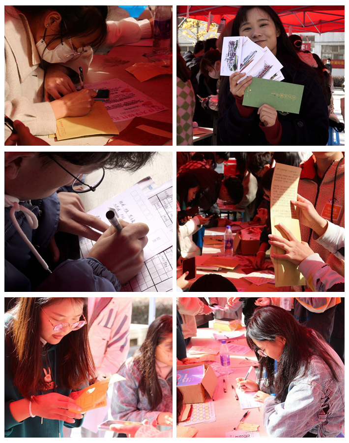 11月21日,淅淅沥沥的小雨给校园增添了几分寒意,却阻挡不了同学们参加活动的热情,前来参与活动的同学络绎不绝,由于很久没有提笔写信,很多同学甚至已经忘记写信的方法,在工作人员的指导下,同学们认真完成了信封封口,填写寄件信息,粘贴邮票等操作,短短3天时间,学生会便收到近千份情真意切的书信,有的是写给未来的自己,这些信件将由学生会珍藏,一年后再交回写信人手中,由此打开时间的闸门,收获意外的惊喜,有的写给亲爱的同学,敬爱的老师,用特殊的方式倾诉心声 雷火竞技app下载,表达祝福,还有的是写给校外的亲友,粘上邮票,跨越距离,在彼此分离的日子里也能见字如面,知晓近况。