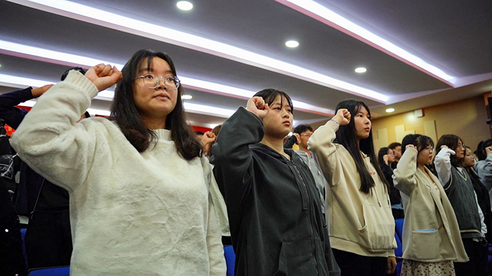 活动最后,全体团员在许周涵同学的带领下重温入团誓词,“我志愿加入中国共产主义青年团 雷火竞技手机版,坚决拥护中国共产党……”同学们高举右拳,庄严宣誓,嘹亮的声音响彻整个会场。