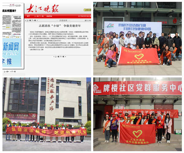 一体两翼,以大学生综合素质提升为主体,以社会实践志愿服务和各类文化体育竞赛为两翼,两翼齐飞,助力团员青年素质提升,社会是个大课堂,为促进团员青年对社会的了解,实现书本知识和实践知识的更好结合,树立勇担社会责任意识,系团总支与芜湖市卫计委举办“开展终结结核行动,共建共享健康中国”为主题的结核病防治宣传活动,与澛港街道开展了“世界水日进社区”宣传活动,与蚌埠市禹会区喜迎门社区开展法制宣传进社区等多种社会实践和志愿服务活动,其中《大江晚报》以“志愿清洗‘小绿’争做美德青年”为题报道了我校人文外语系与芜湖公共交通集团举办的志愿服务活动 雷火竞技安卓版。